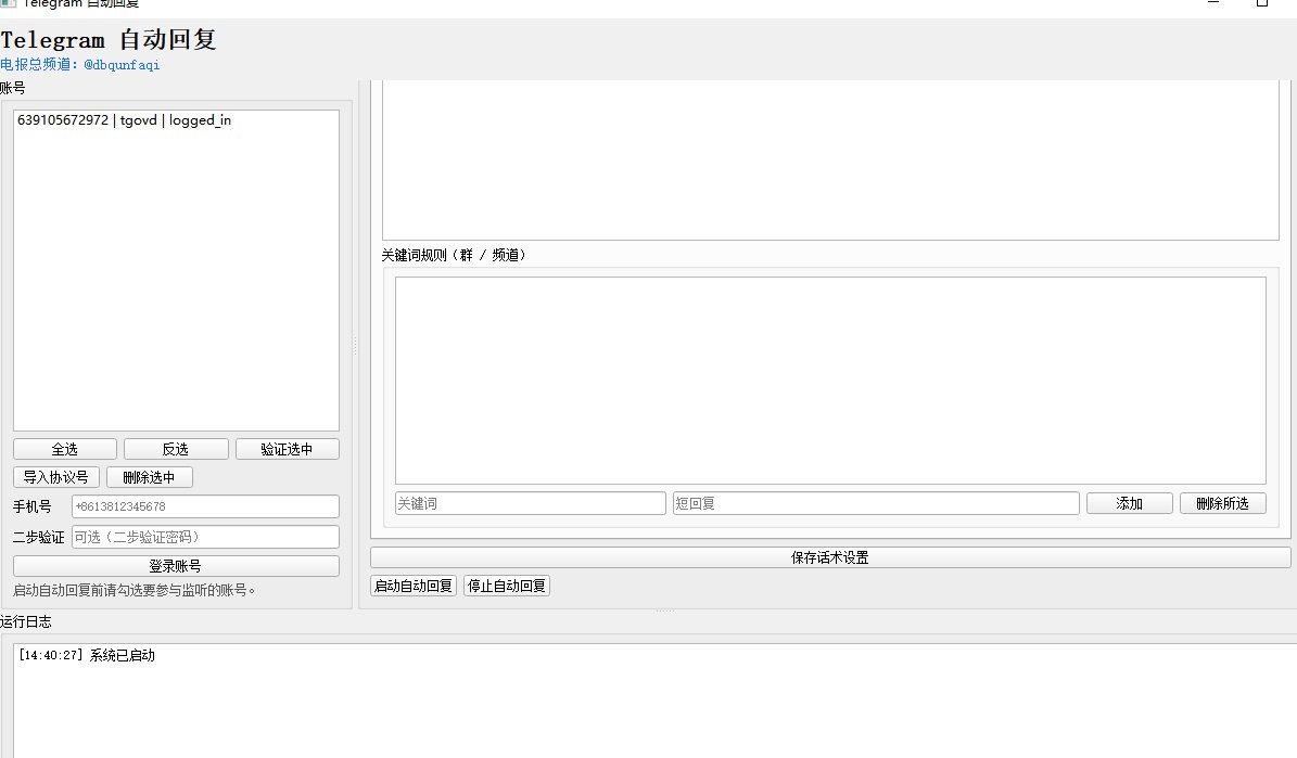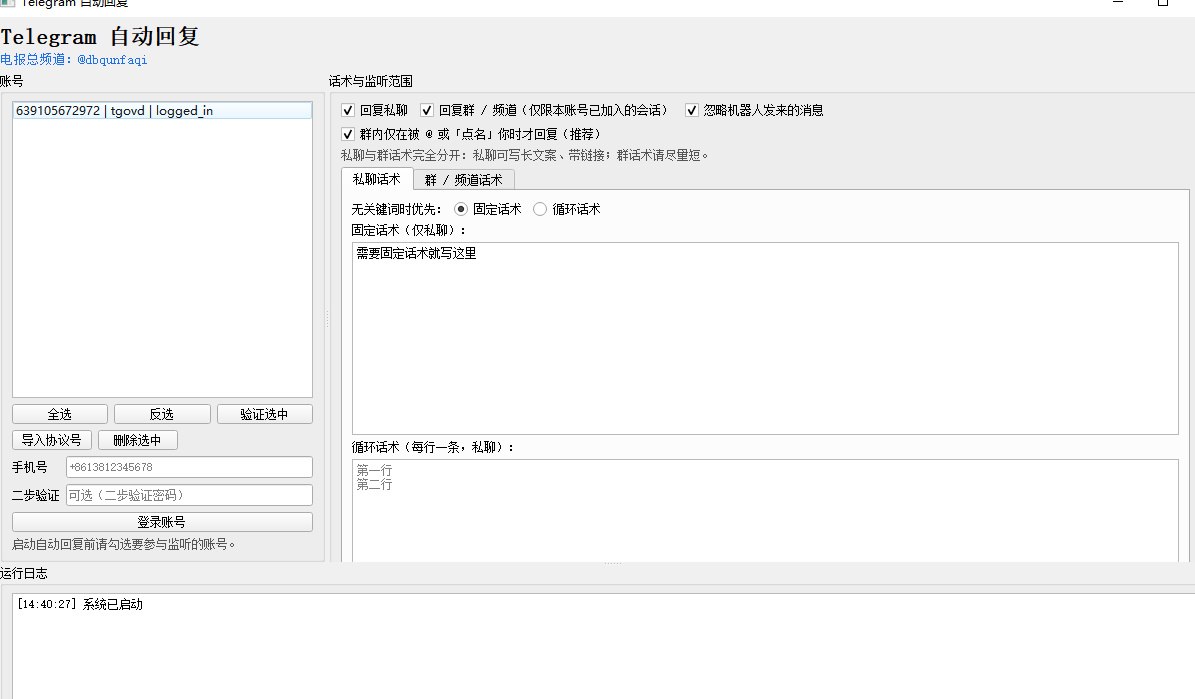 功能: 登录账号 私信设置固定话术 设置循环话术 设置关键词回复
